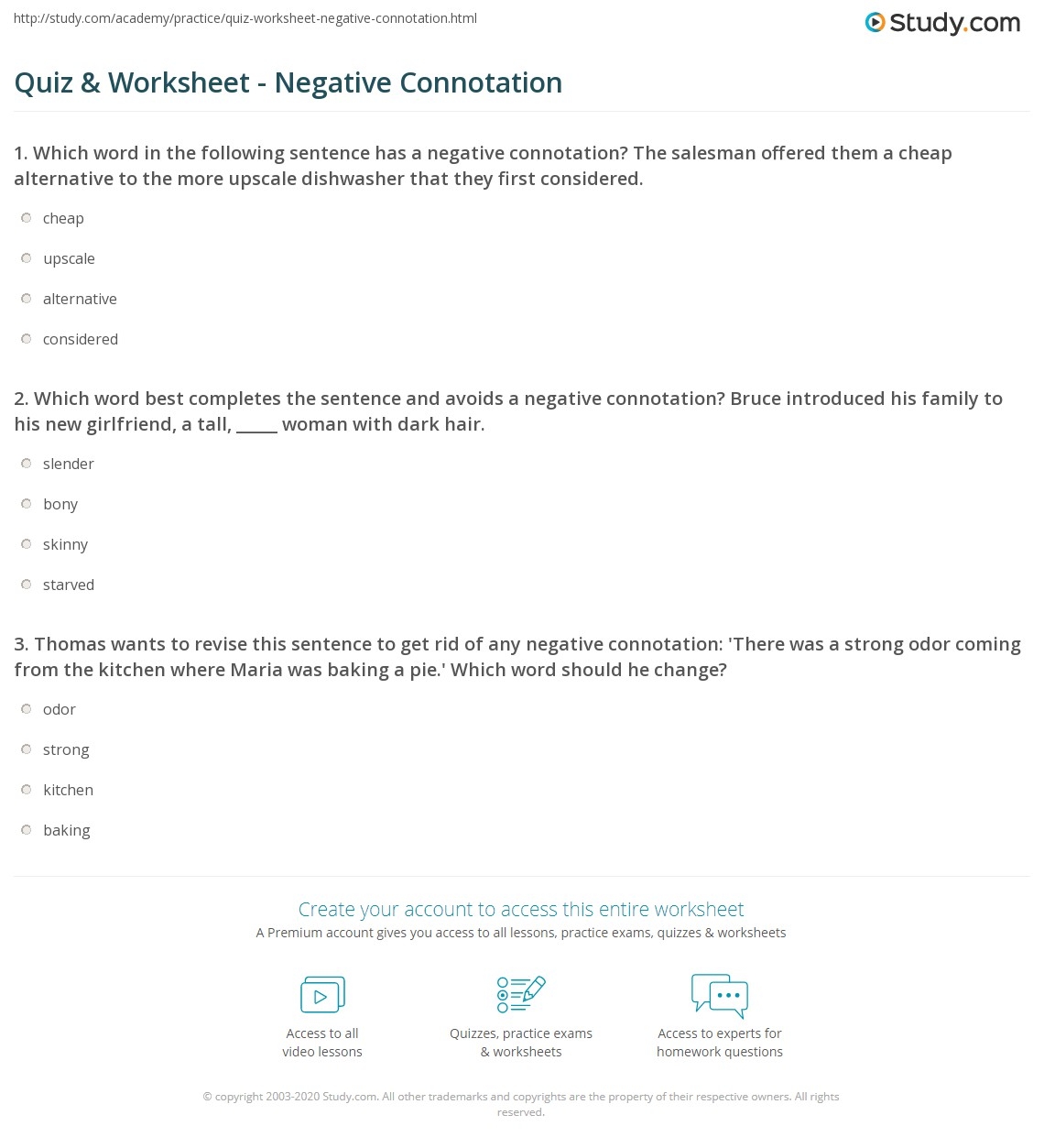 Free Printable Connotation Worksheets