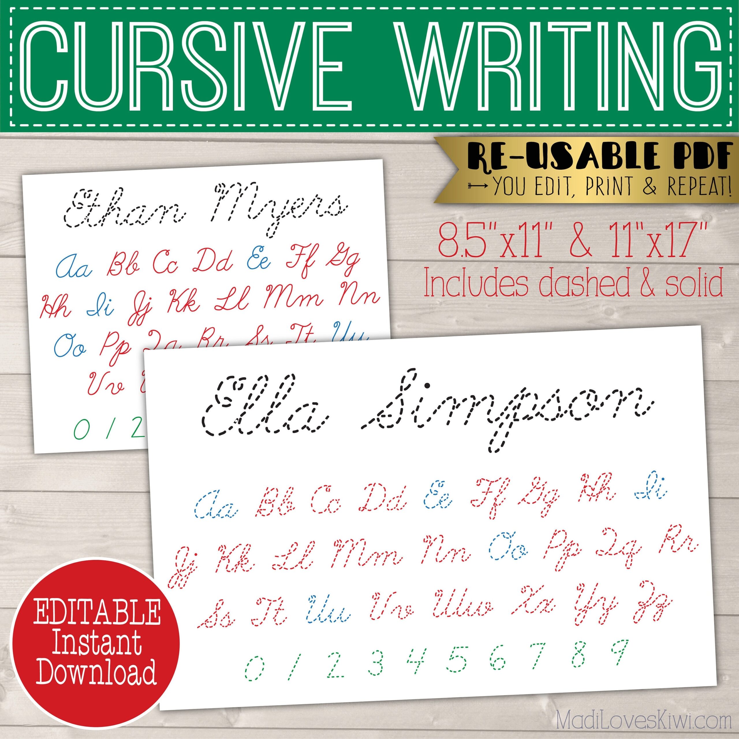 Printable Cursive Name Writing Worksheet Editable Script Handwriting Practice Page Madi Loves Kiwi Digital Downloads