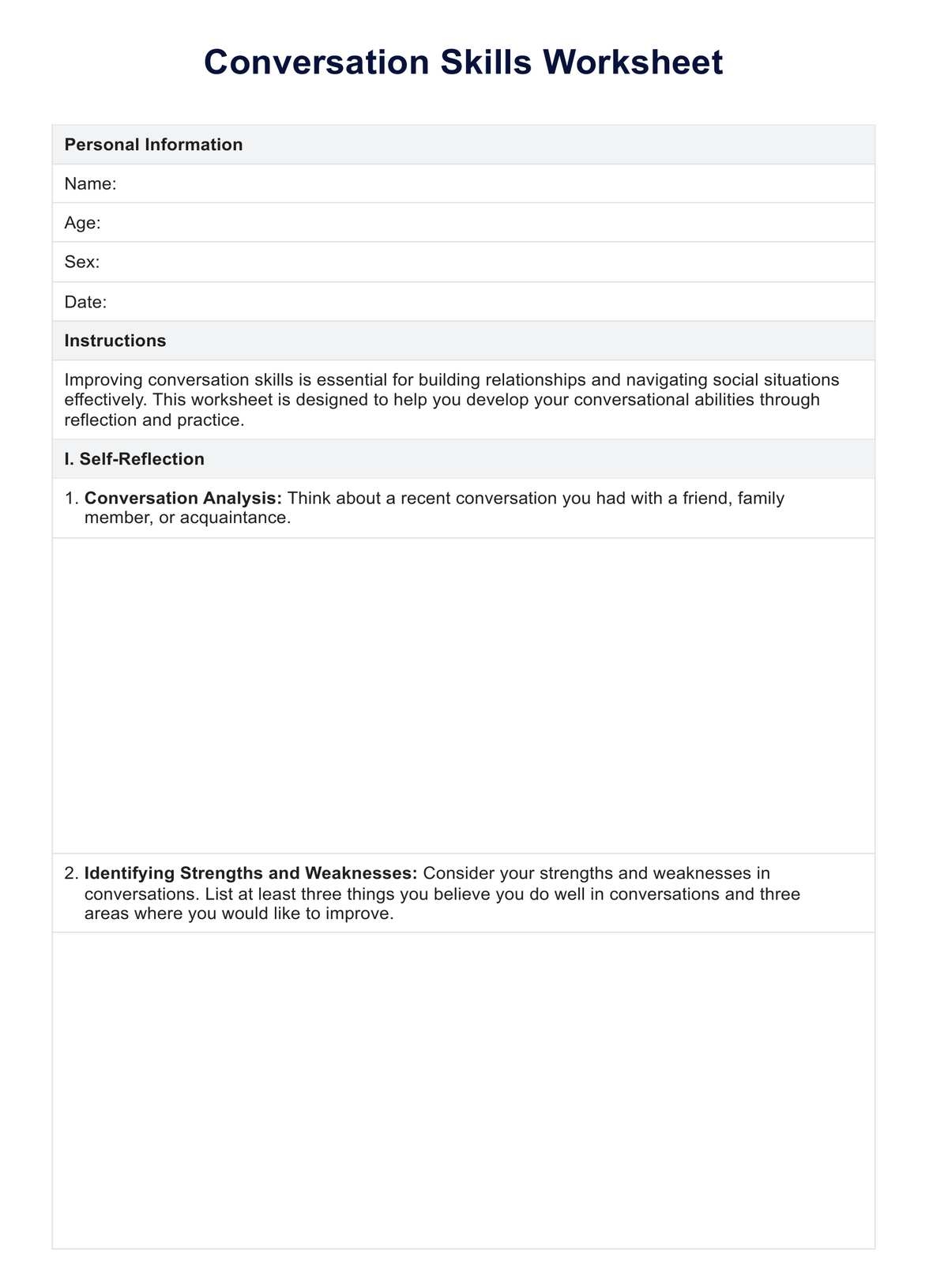 Conversation Skills Worksheet U0026 Example Free PDF Download