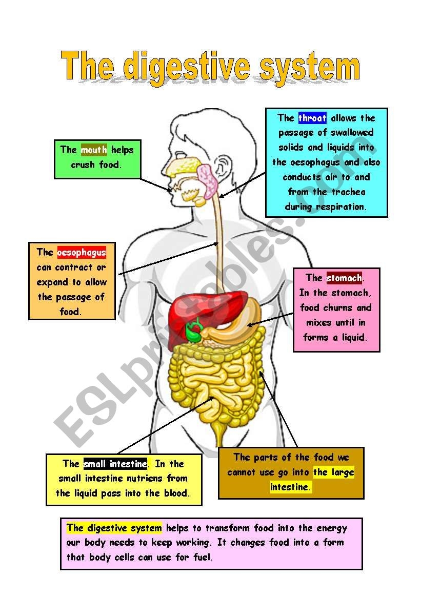 The Digestion Systlem ESL Worksheet By Mariola PdD