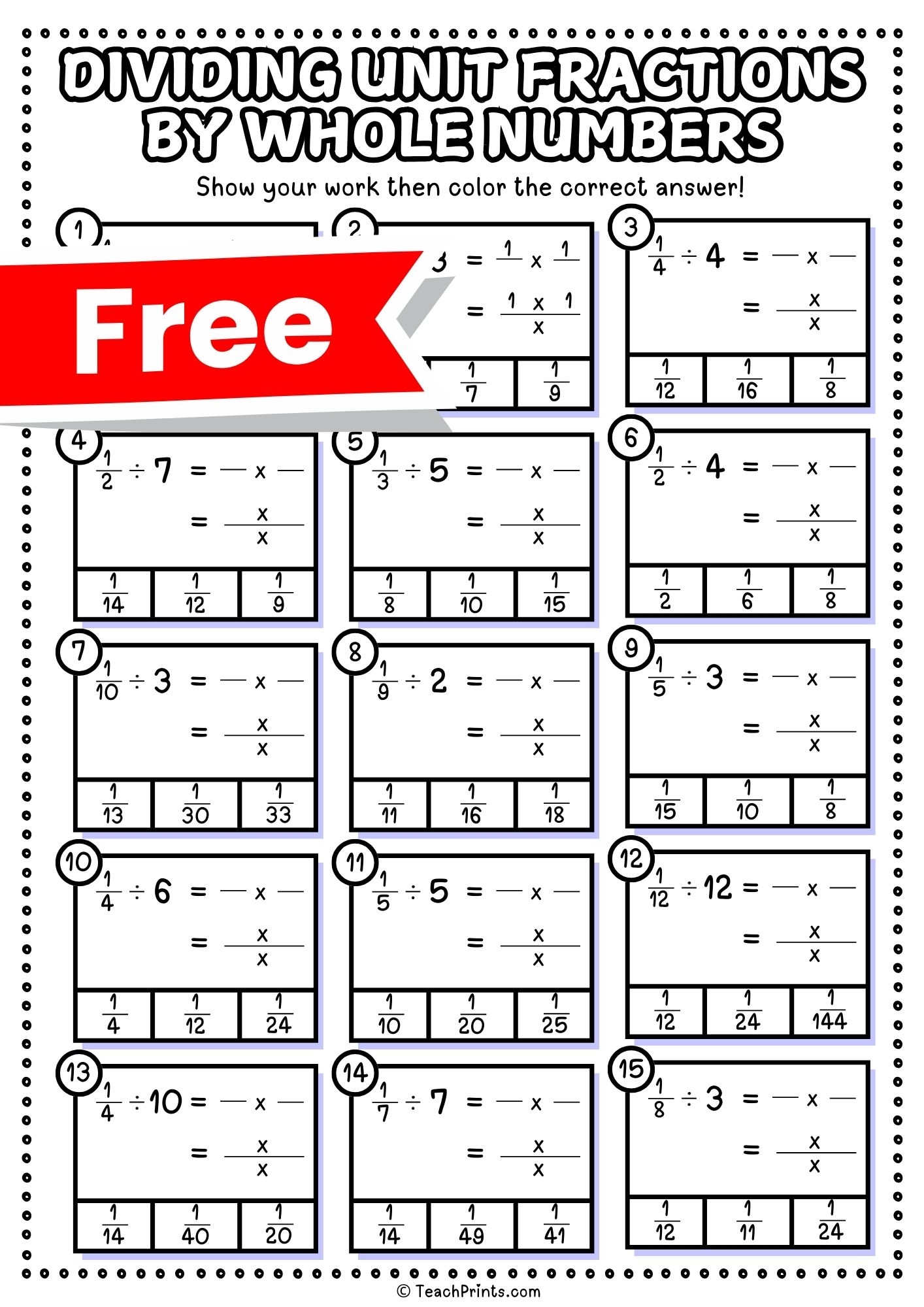 Dividing Unit Fractions By Whole Numbers Worksheets Teach Prints