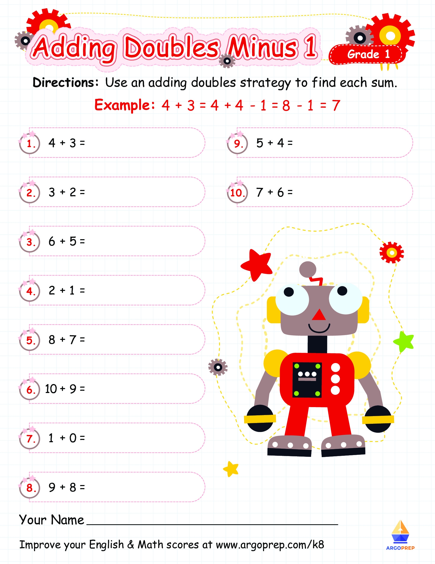 Doubles Minus One Free Printable Worksheets For Grade 1 ArgoPrep