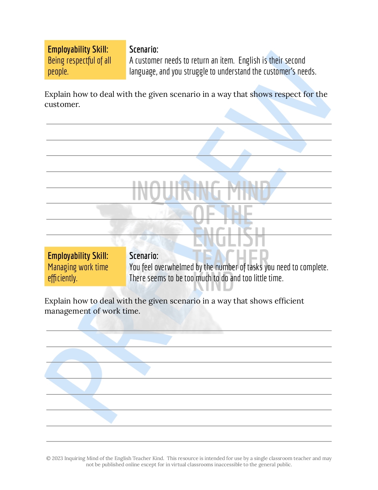 Free Printable Employability Skills Worksheets