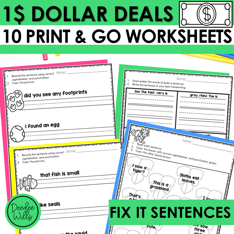 Dollar Deal Writing Sentences Worksheets Fix It Sentences For Kindergarten Mrs Wills Kindergarten