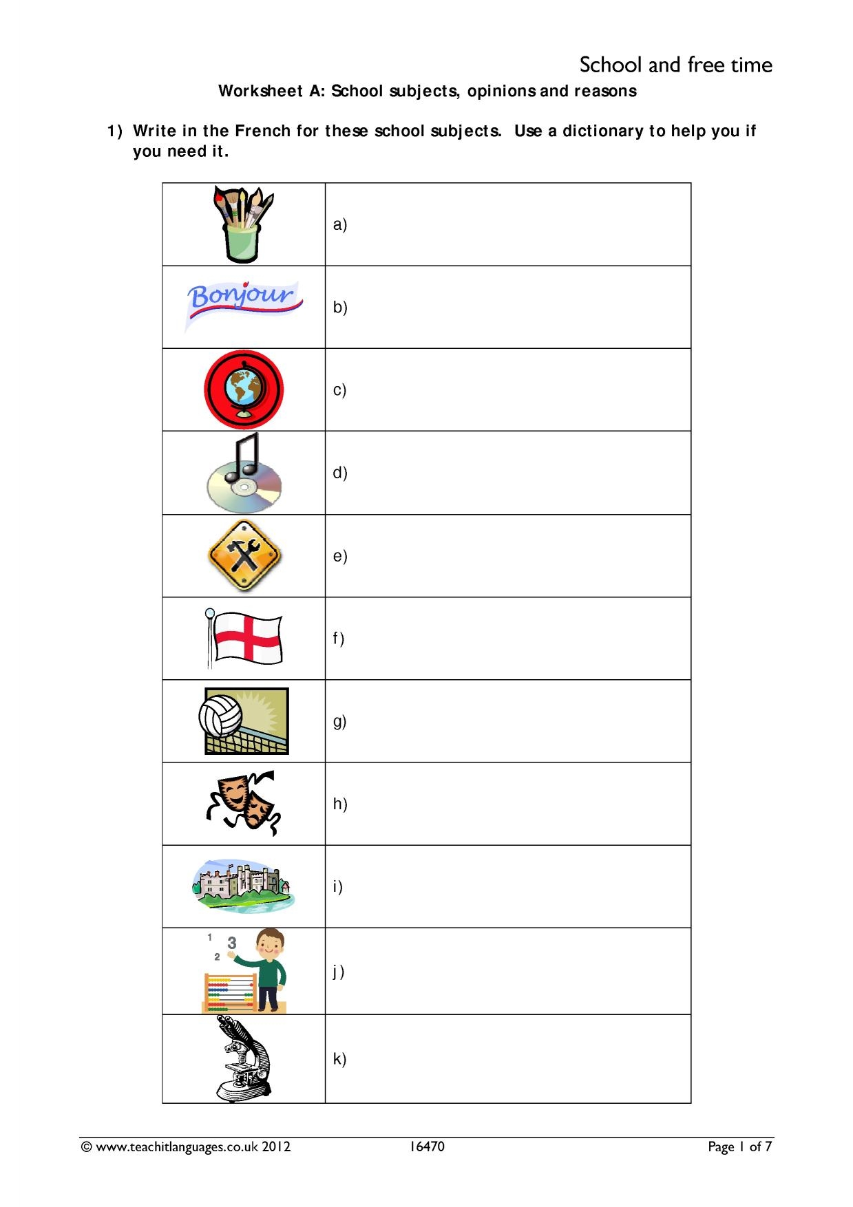 Cover Worksheets School KS3 French Teaching Resource Teachit