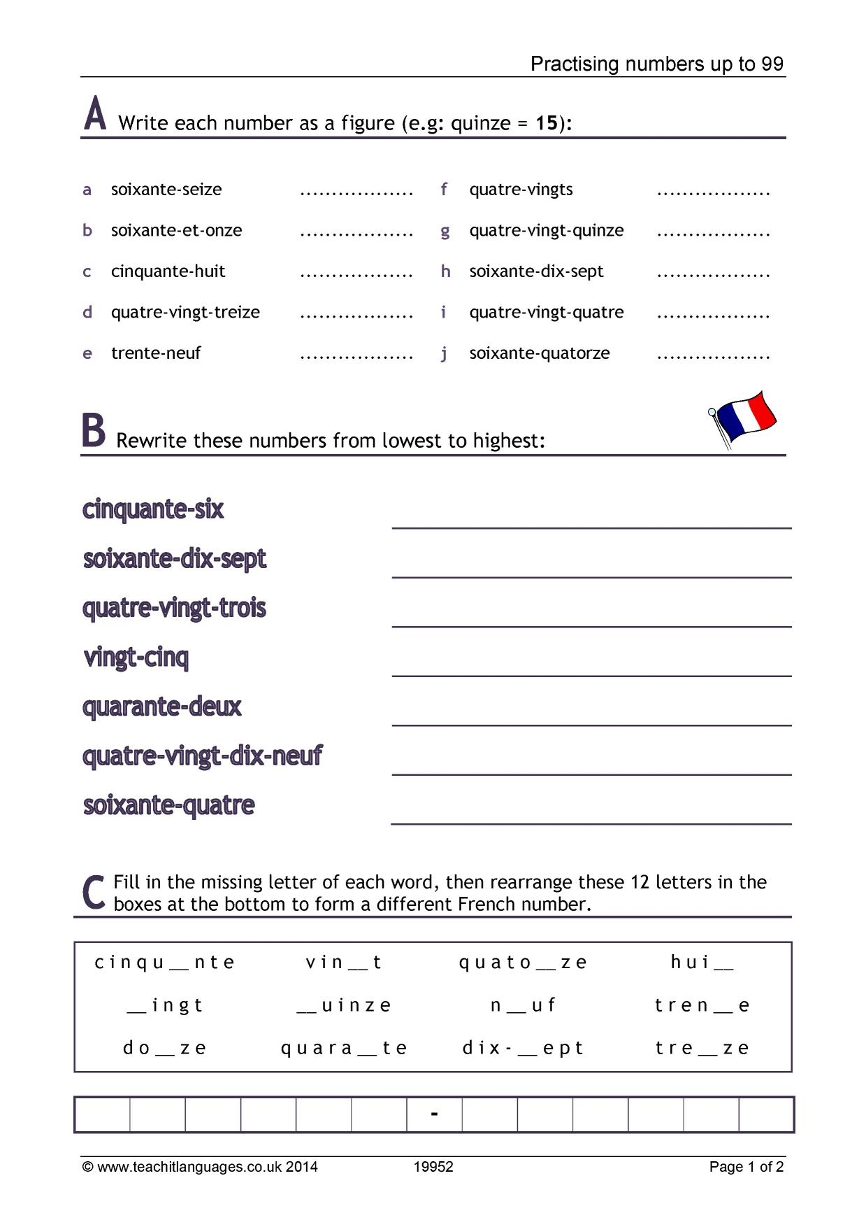 Worksheet Numbers 1 99 KS3 French Teaching Resource Teachit