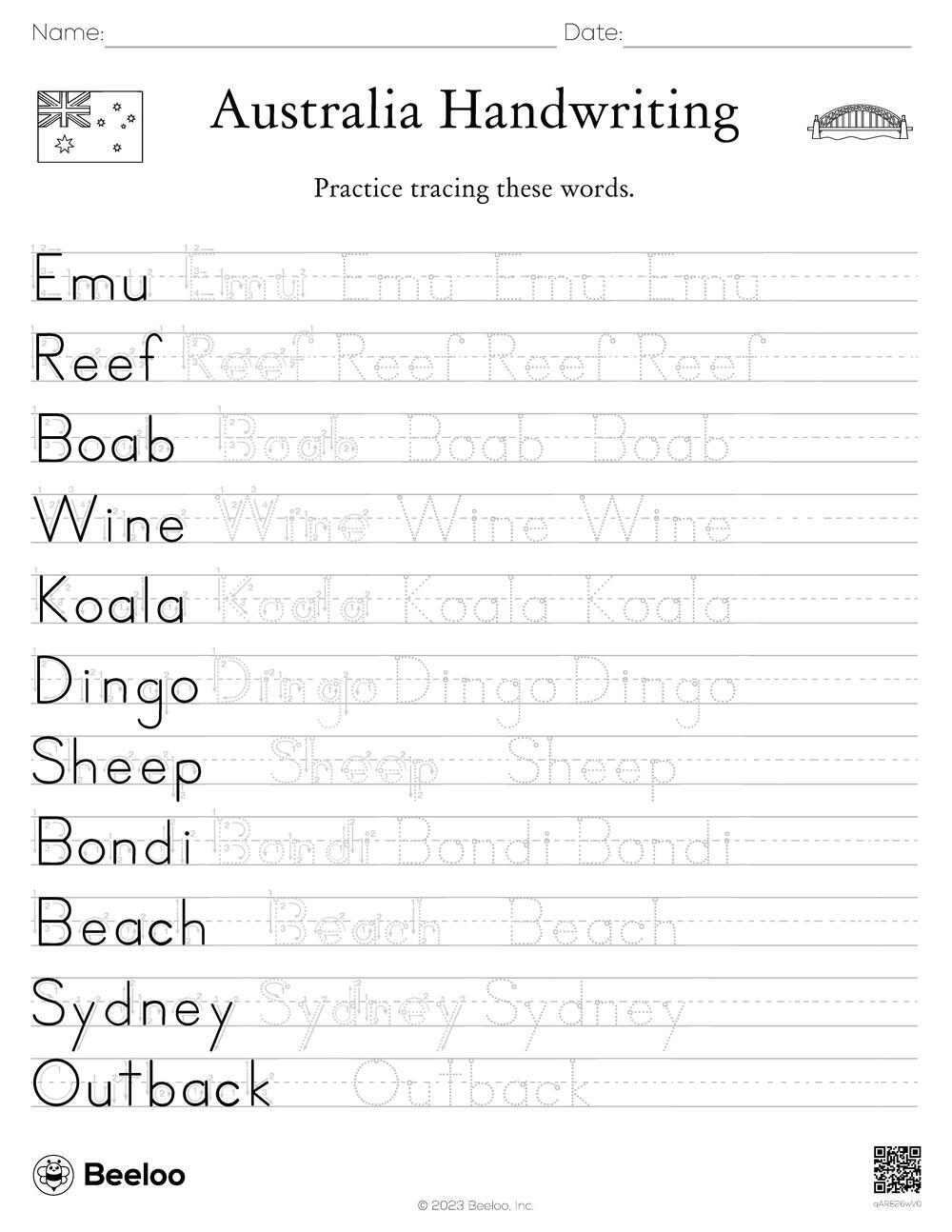 Australia themed Word Tracing Worksheets Beeloo Printable Crafts