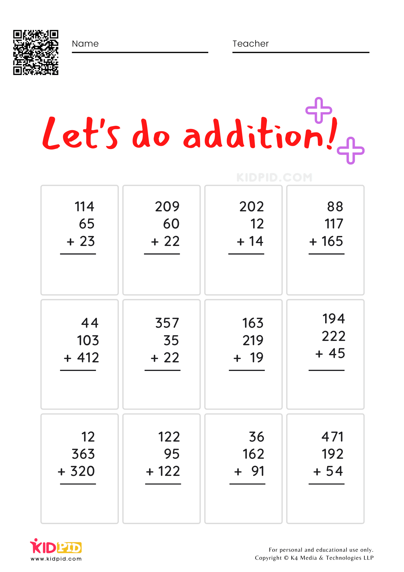 Multi digit Addition Math Foundational Worksheets Kidpid