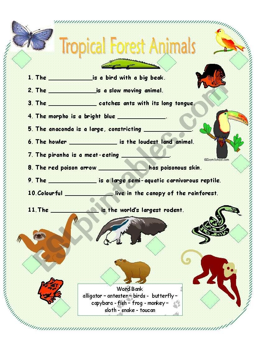 Free Printable Rainforest Worksheets