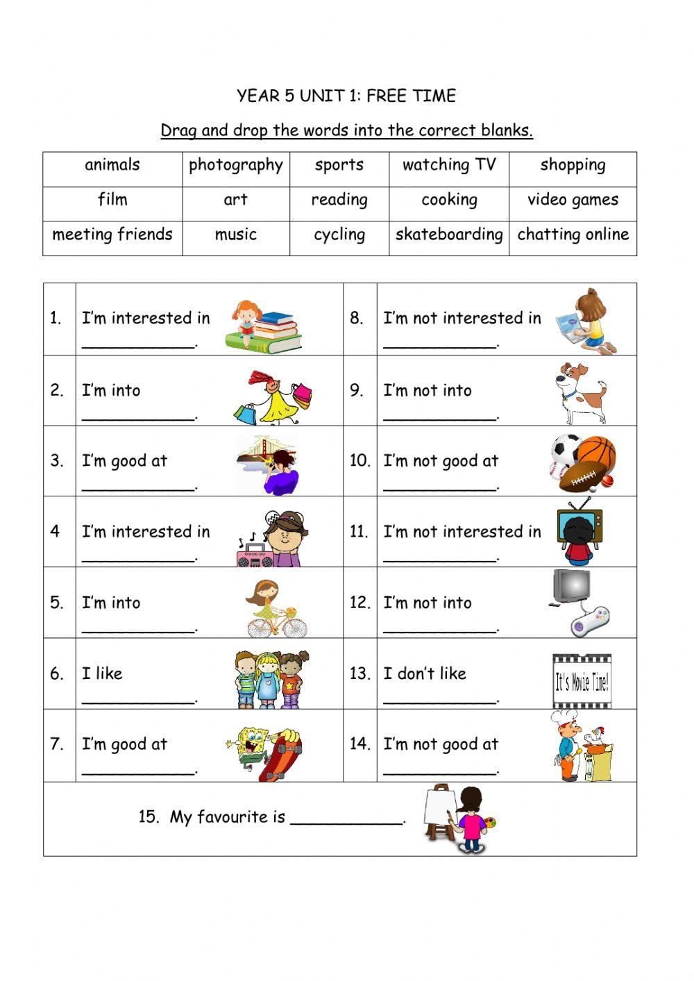 English Year 5 Free Time Mdm Syahira Live Worksheets Library