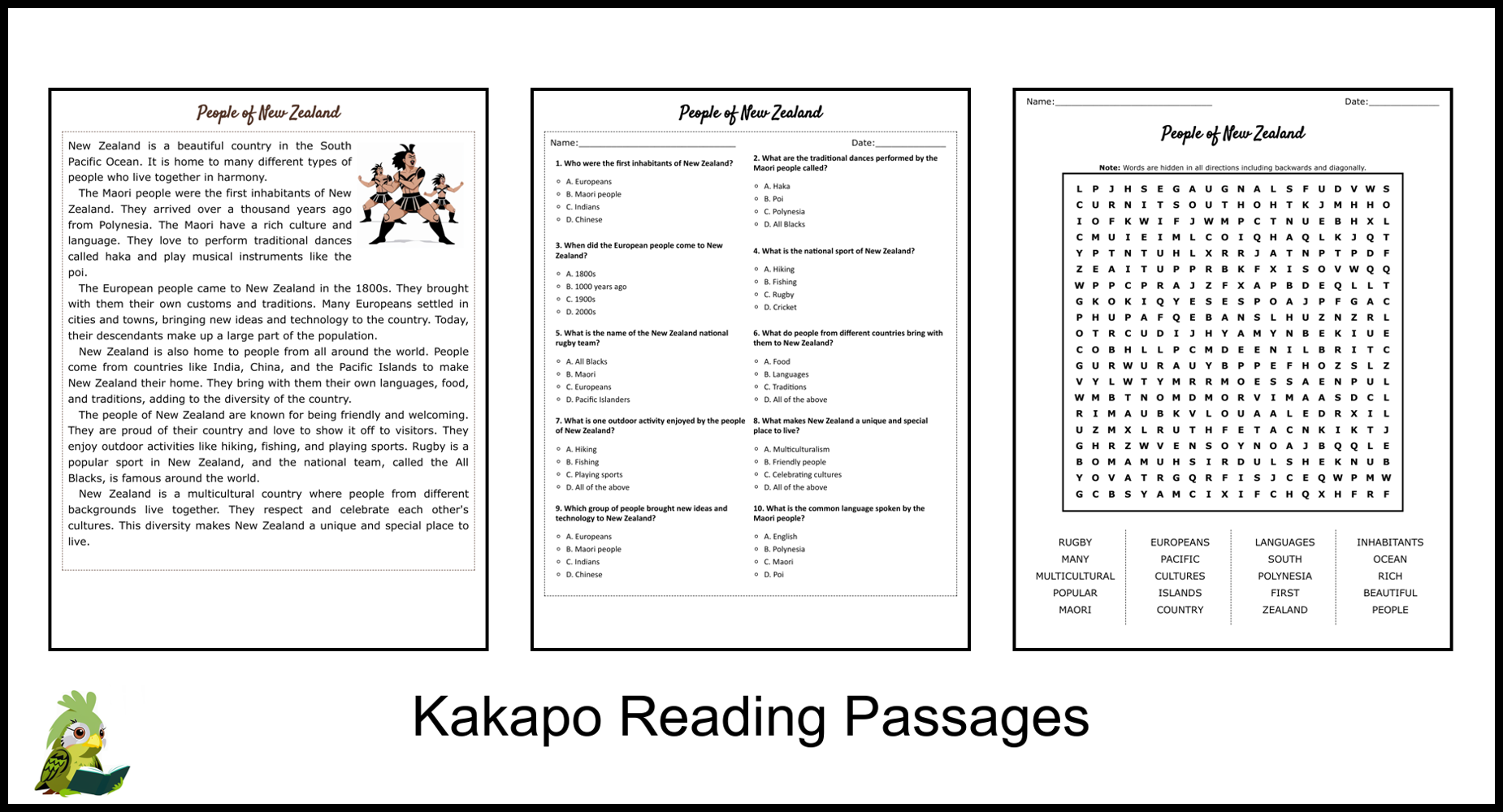 People Of New Zealand Reading Comprehension And Word Search