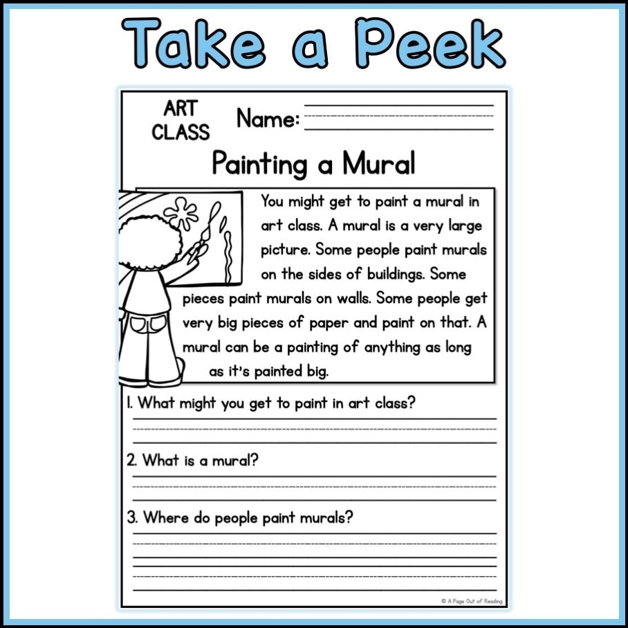 Art Class Reading Comprehension Passages And Questions Back To School Science Printable Worksheets Etsy UK