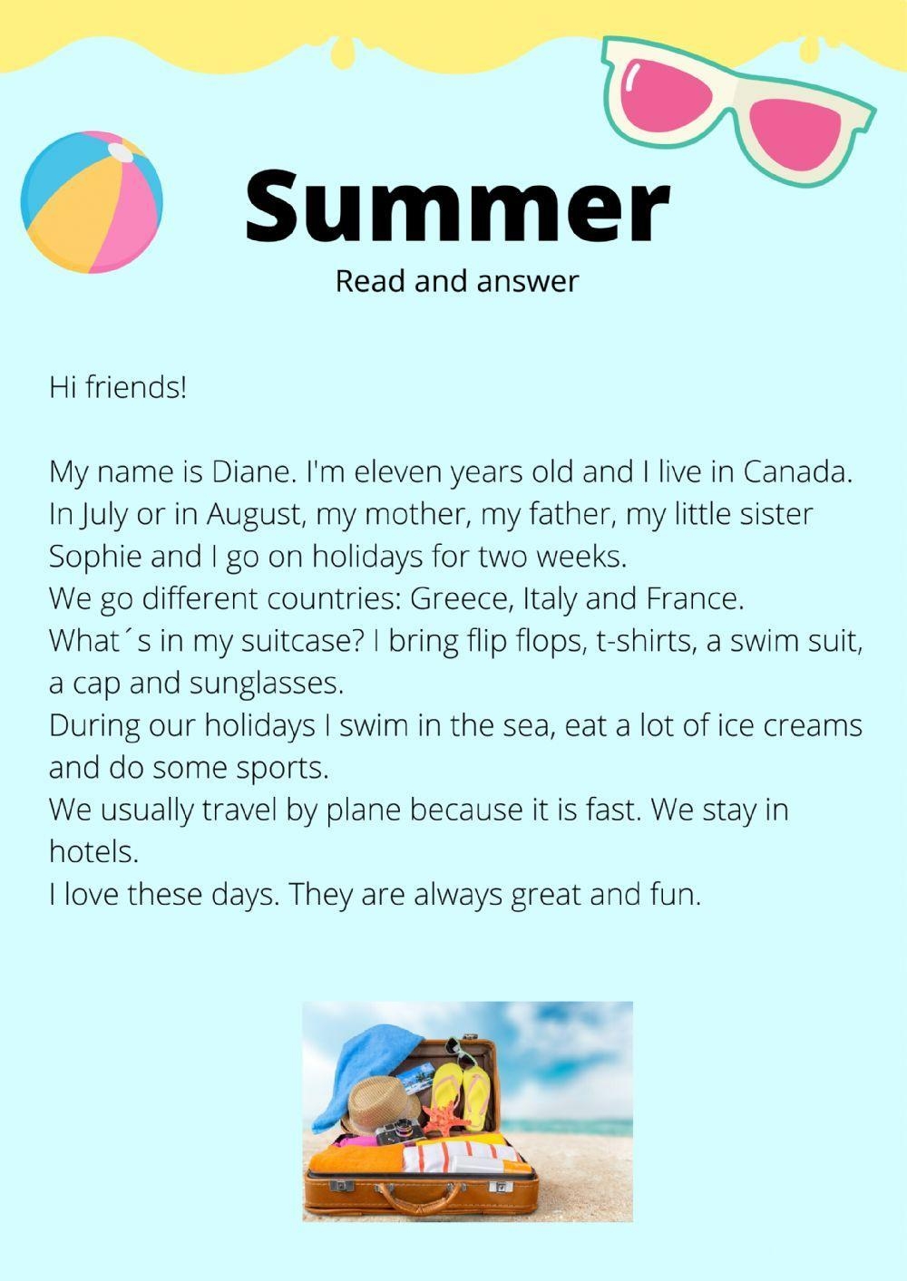 All About Summer Reading Comprehension Worksheet Have Fun Teaching