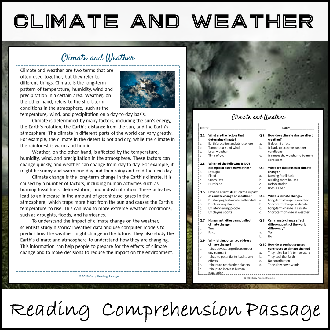 Climate And Weather Reading Comprehension Passage And Questions Worksheets Library