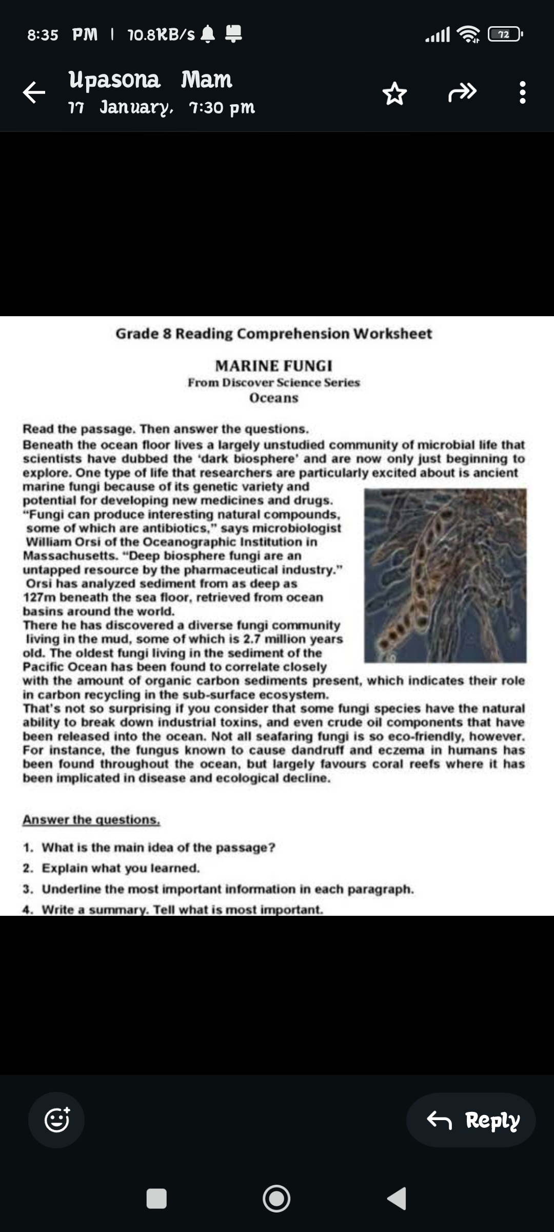 Enhance Your Understanding with Our Fungi Reading Comprehension Worksheet