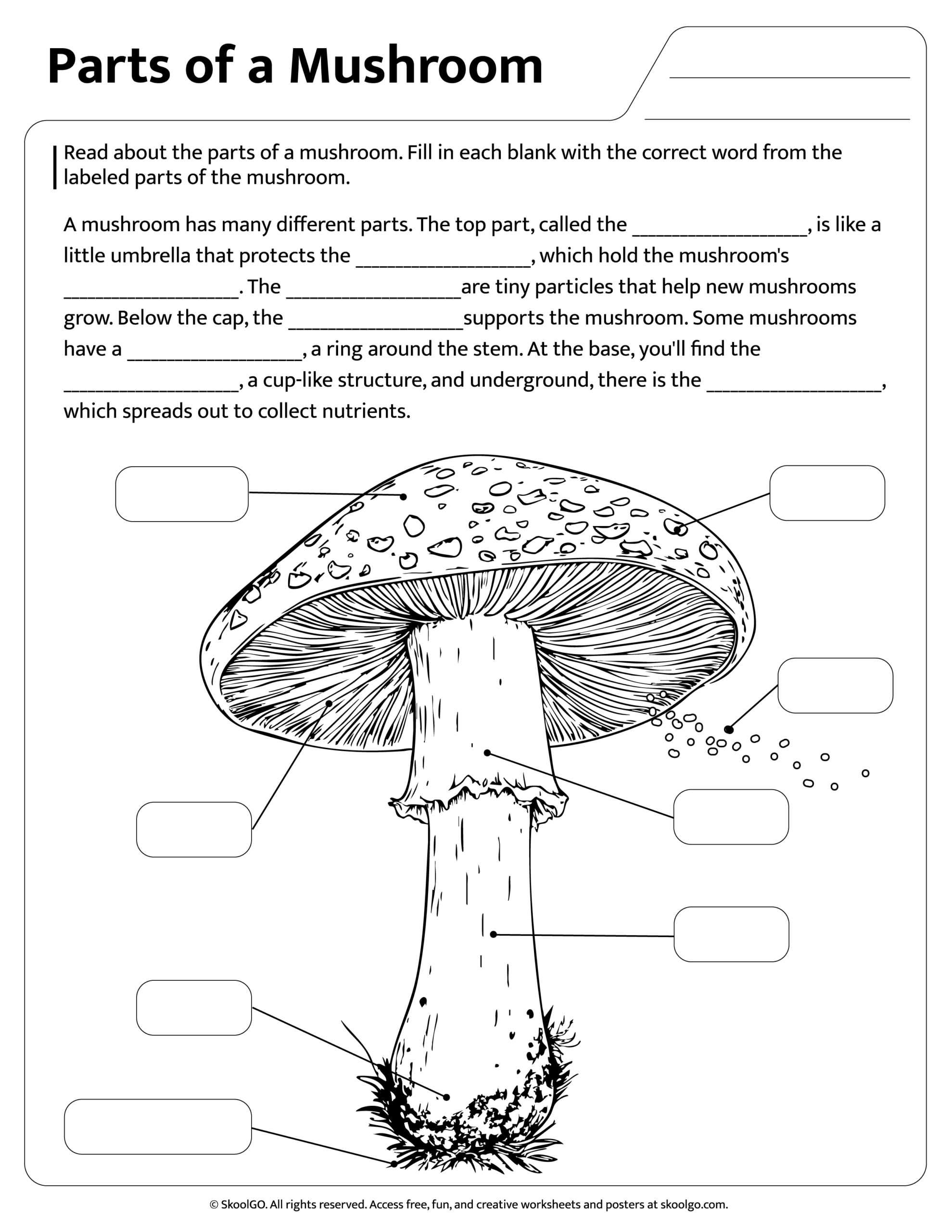 Free Mushroom Parts Worksheet Fun U0026 Educational For Kids