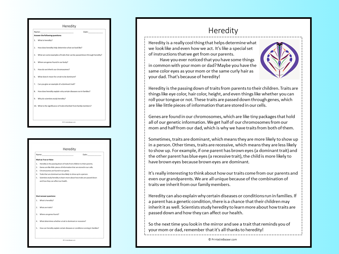 Heredity Reading Comprehension Passage Printable Worksheet Teaching Resources