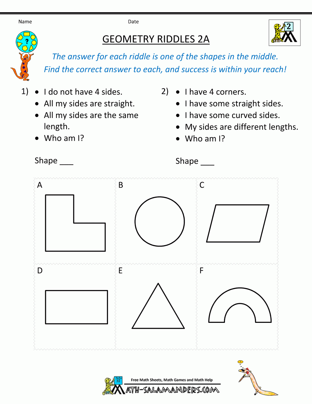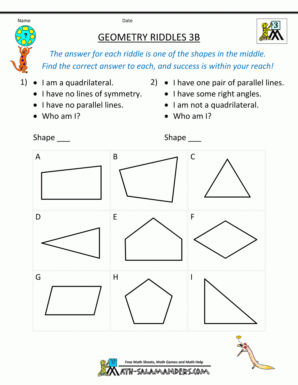 Printable Geometry Worksheets Riddles Worksheets Library