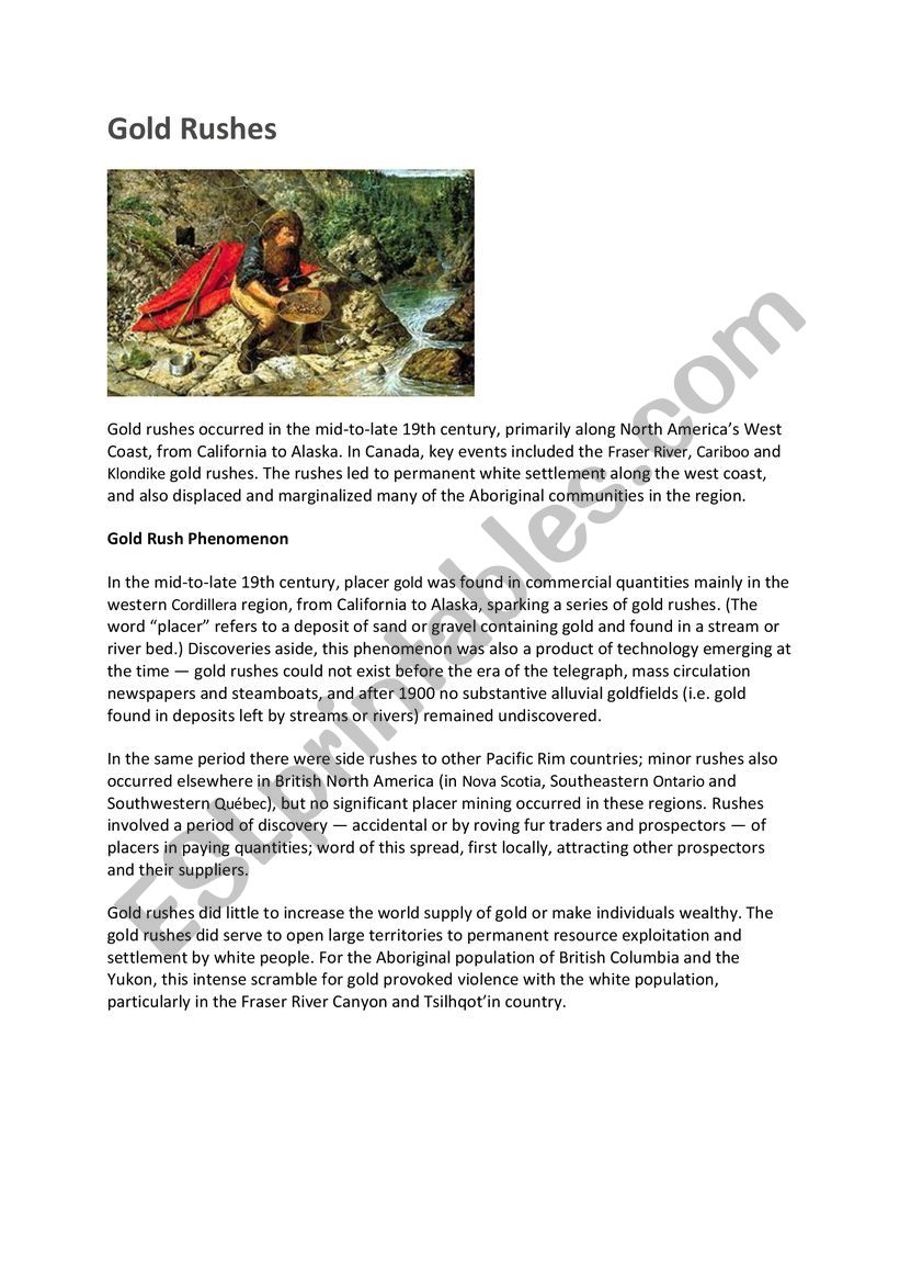 Gold Rushes ESL Worksheet By Jana ilgova gmail