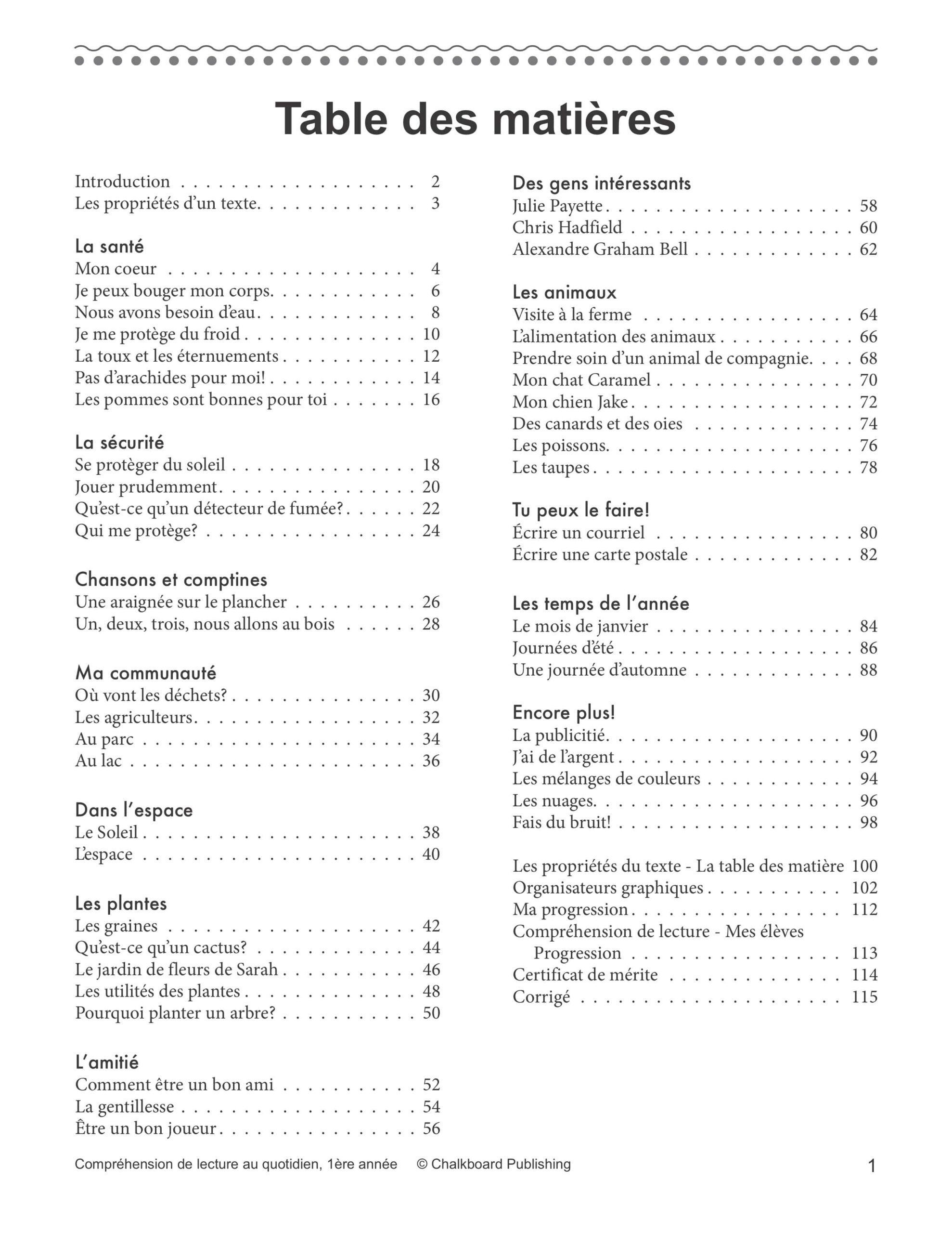 Canadian French Daily Reading Comprehension Grade 1 EBook Chalkboard Publishing
