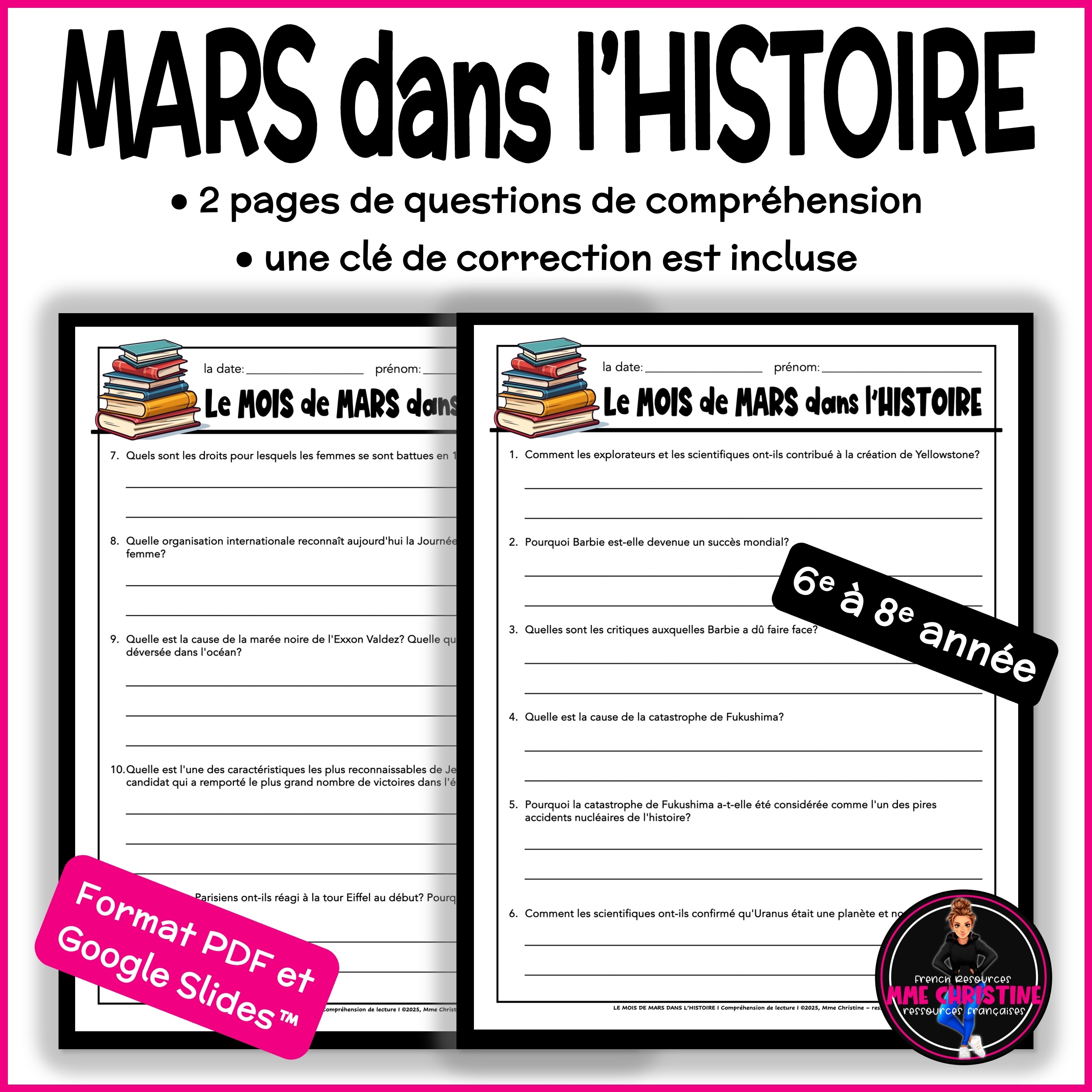 Compr hension De Lecture Le MOIS De MARS Dans L HISTOIRE French Reading Comprehension Mme Christine Ressources Fran aises French Resources