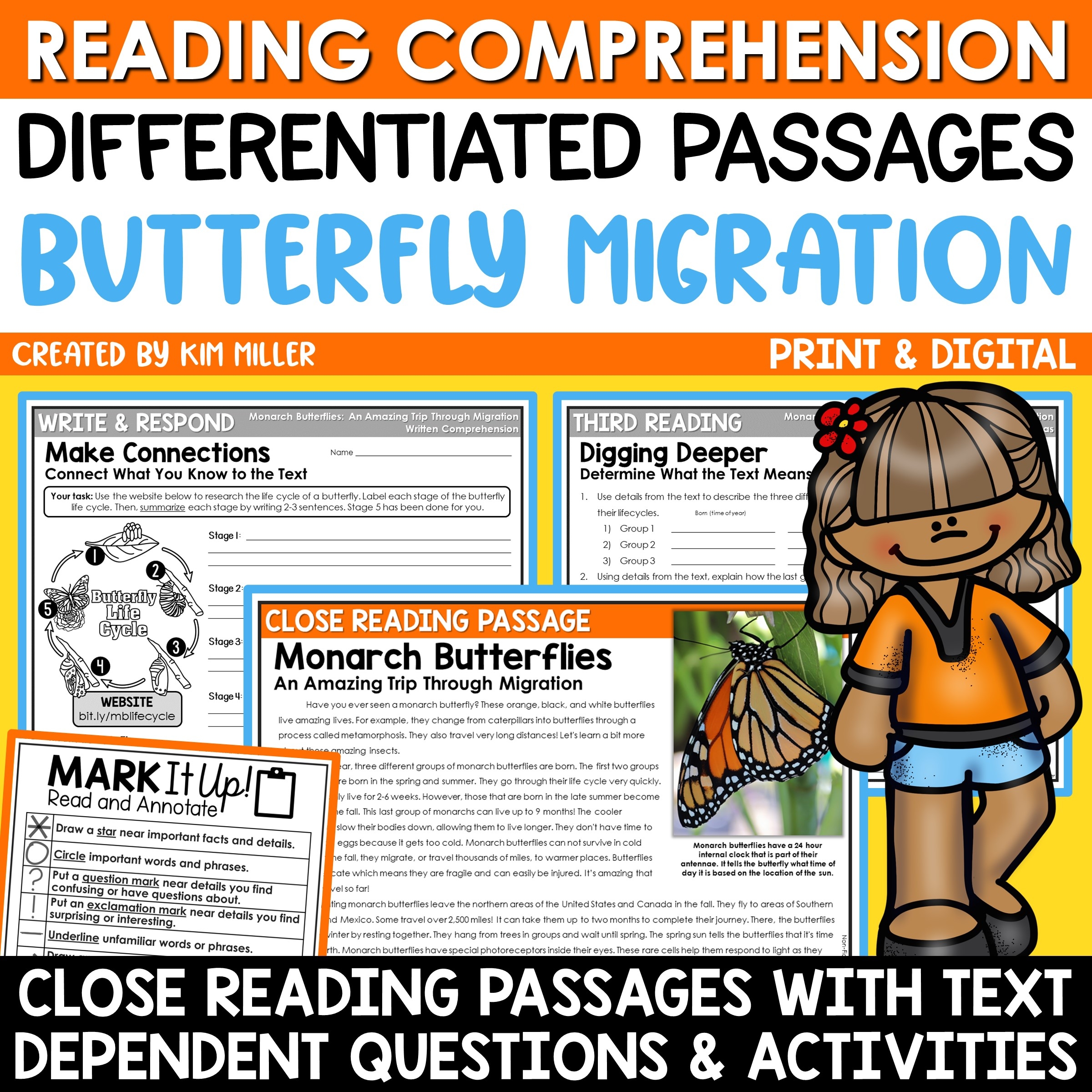 Monarch Butterflies Close Reading Comprehension Differentiated