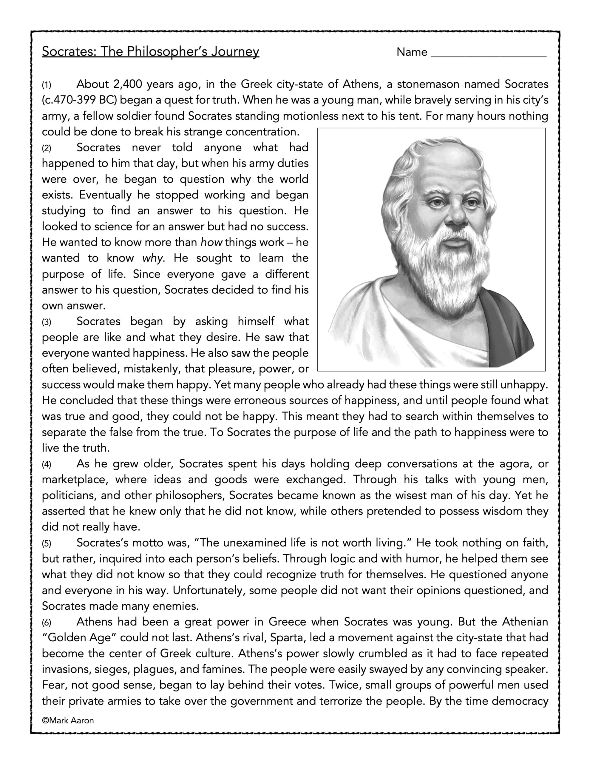 Socrates The Philosopher s Journey History Passage And Assessment Classful