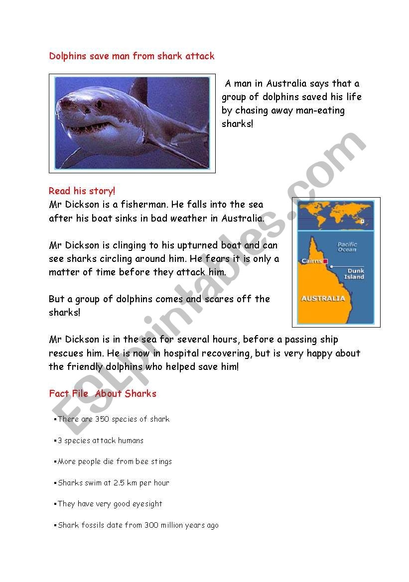 Types Of Sharks Reading Comprehension And Word Search Teaching Resources
