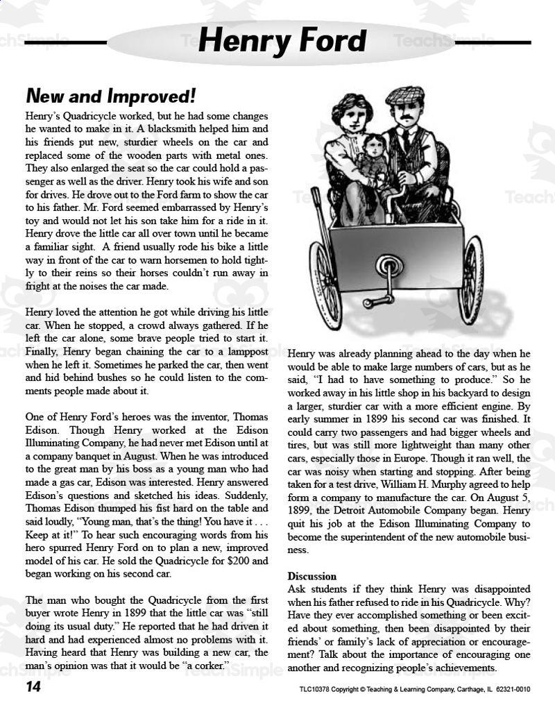 Henry Ford Biography Reading Comprehension Passage Printable Worksheet PDF Teaching Resources