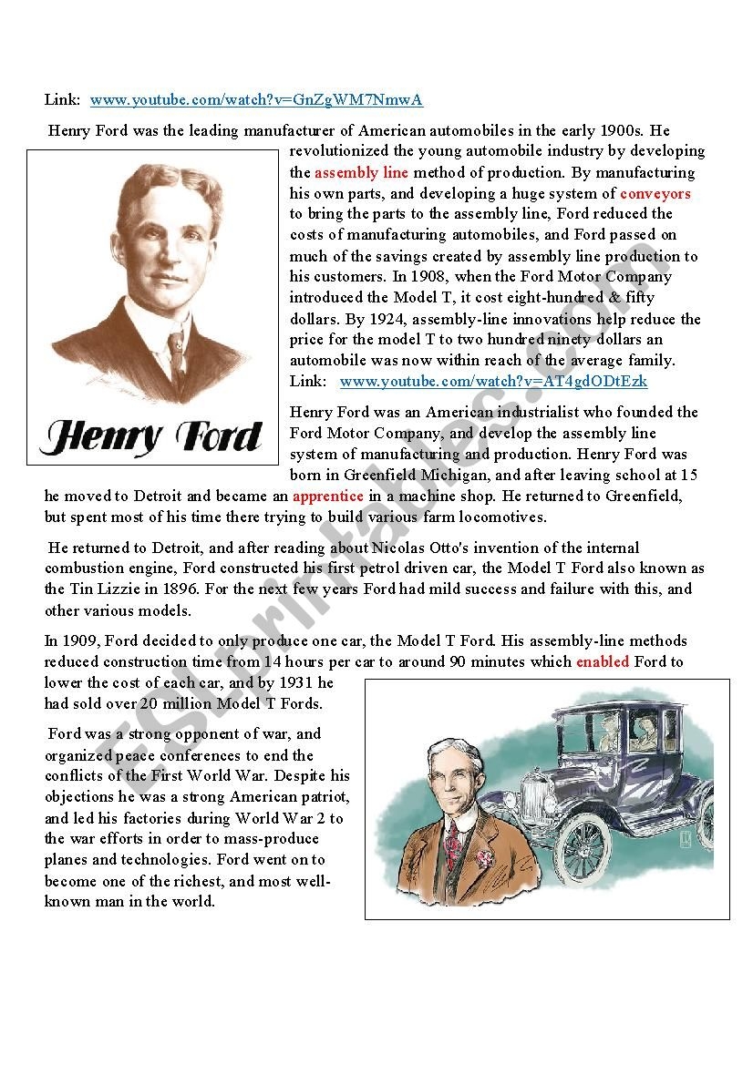 Henry Ford ESL Worksheet By Advokat1794 Worksheets Library