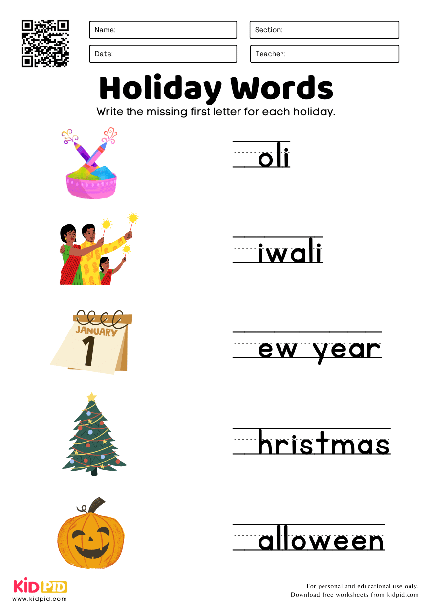 Holidays Vocabulary Worksheet For Kindergarten Kidpid