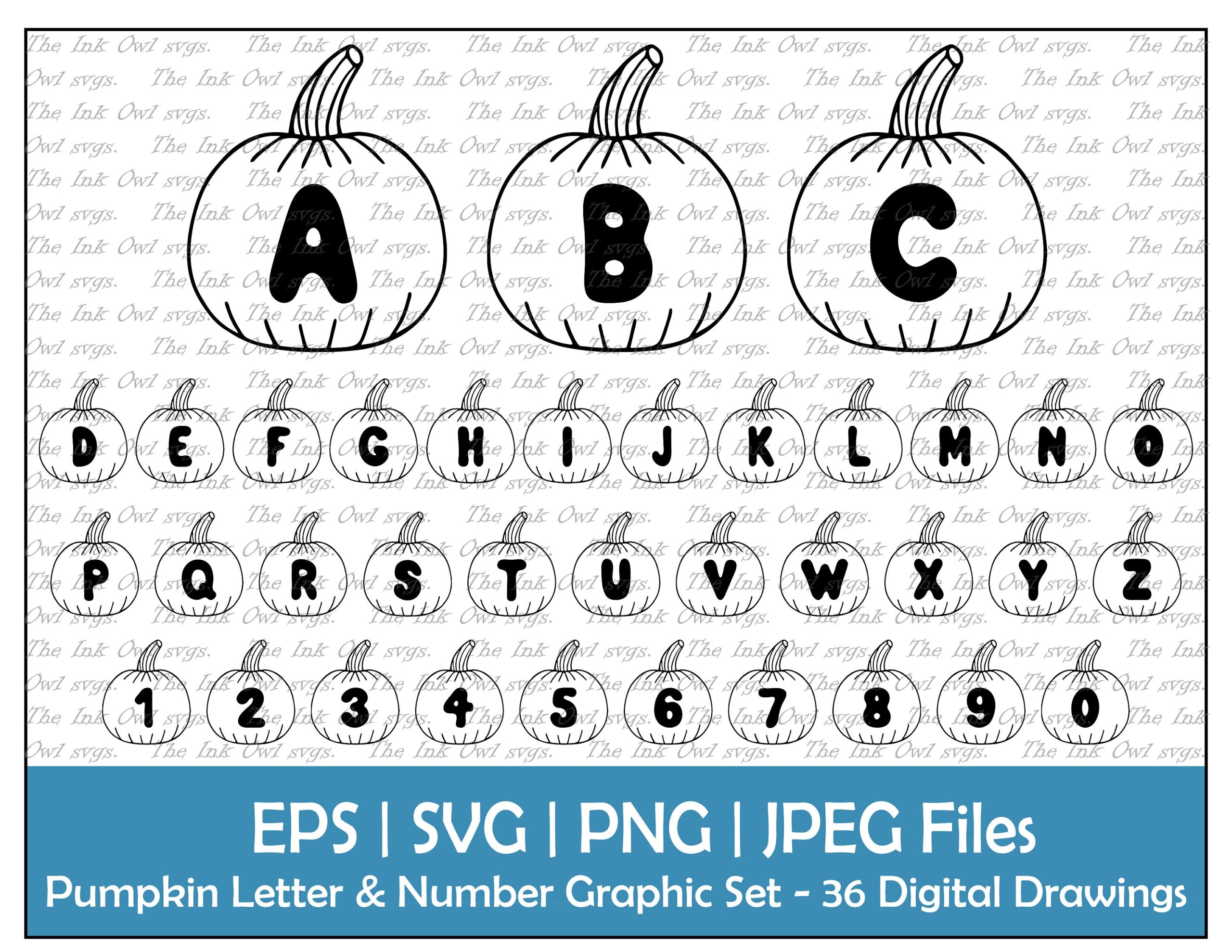 Pumpkin Alphabet Letters And Numbers Vector Clipart Set Outline Text Graphics ABC 123 Banners Halloween PNG JPG Svg Eps Etsy
