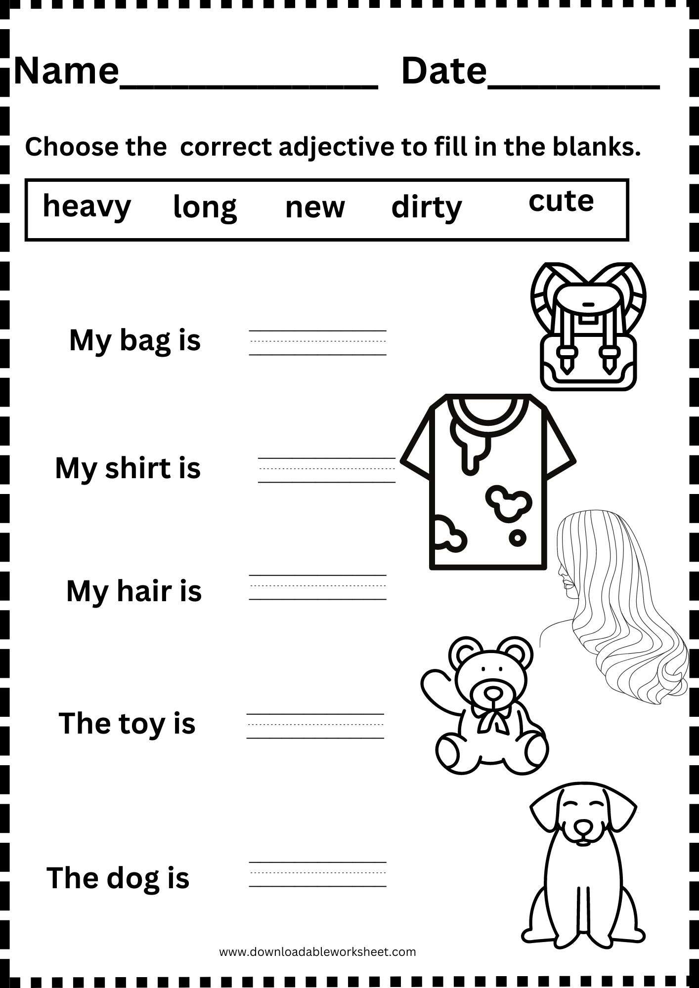 The worksheet includes a variety of exercises such as matching adjectives to pictures, filling in the blanks with the correct adjectives, and writing their own sentences using adjectives. This hands-on approach will help students grasp the concept of adjectives in a fun and memorable way.