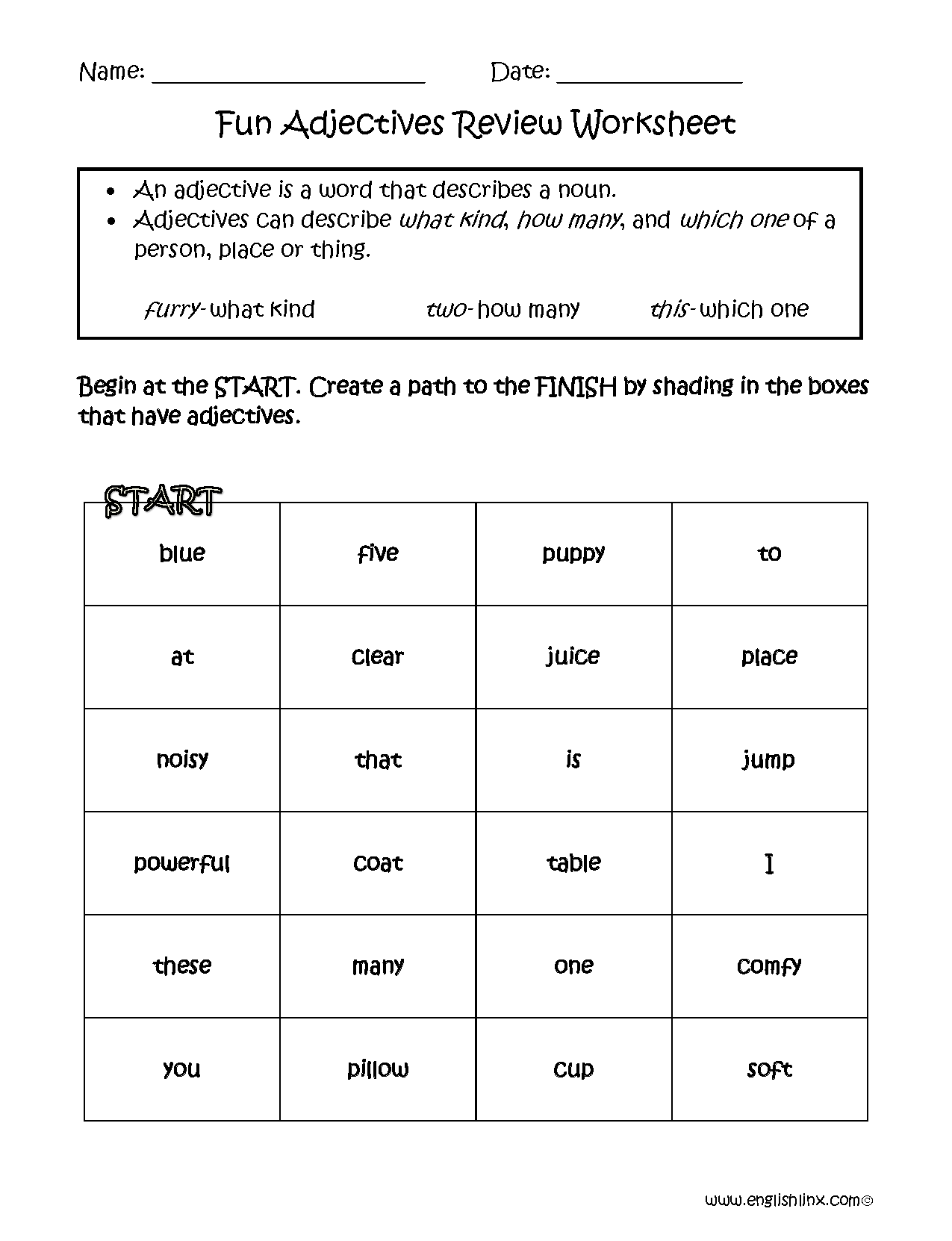 Worksheet Adjective Review Free Printable
